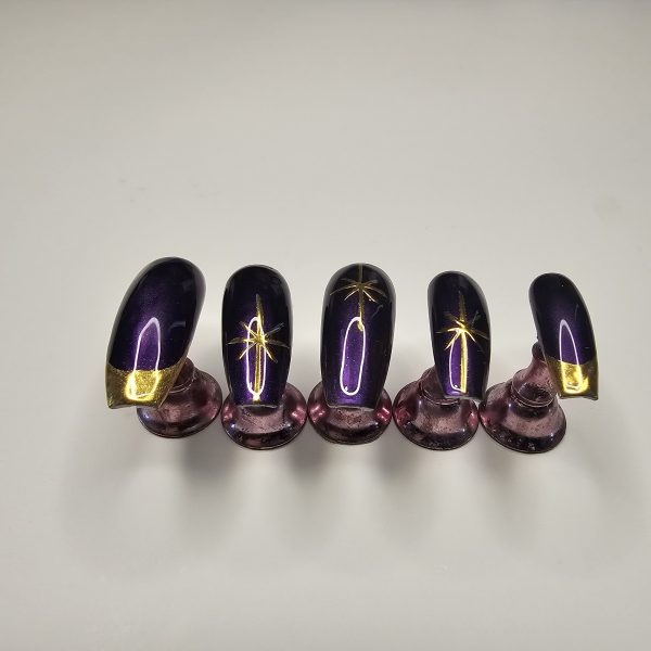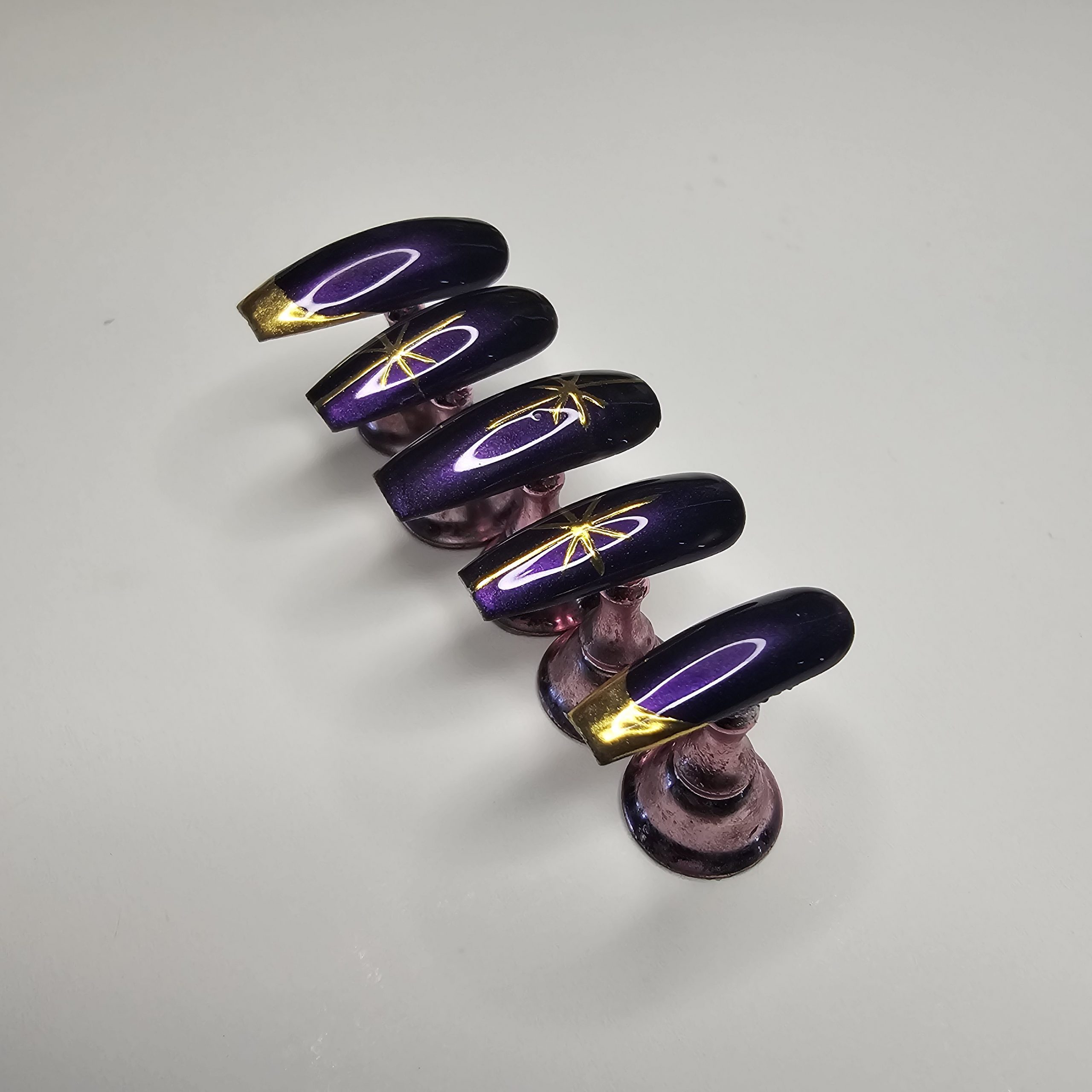 Obsessed is an understatement. This deep violet cat-eye set is designed for women who love elegance with a bold twist. The magnetic shimmer shifts with every movement, while the hand-painted gold accents add a luxe, celestial vibe ✨