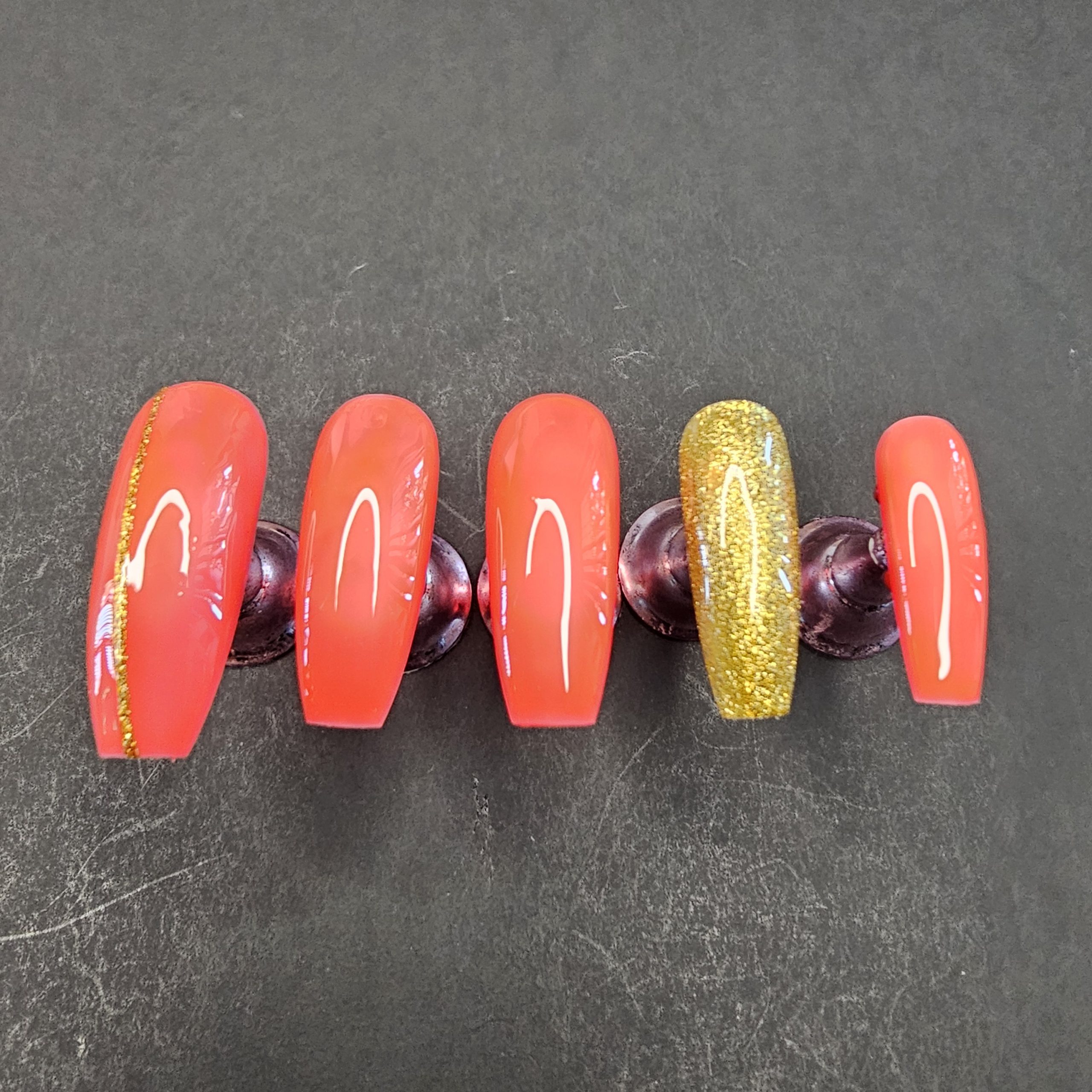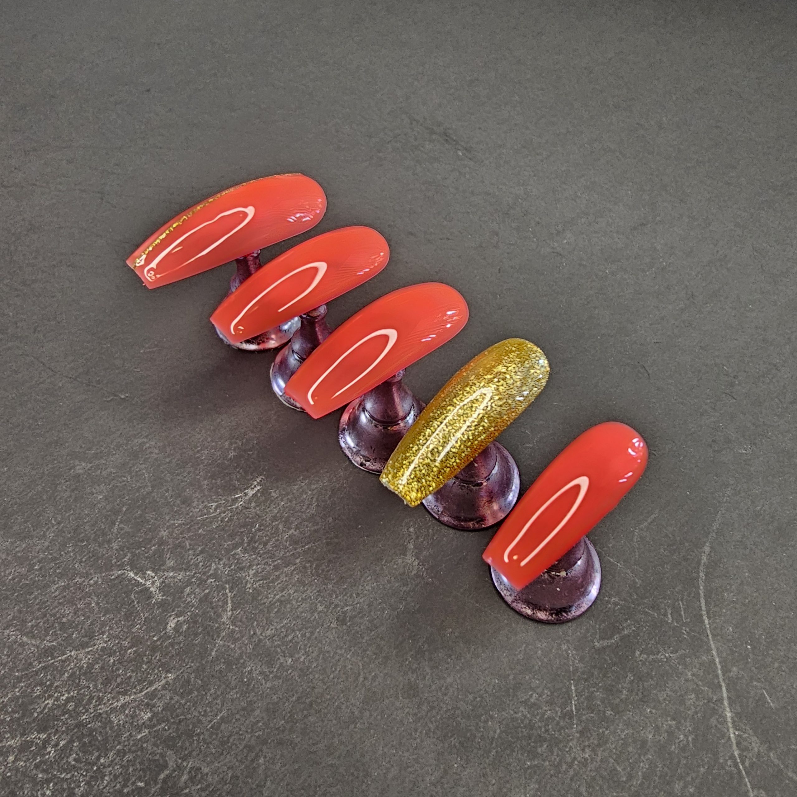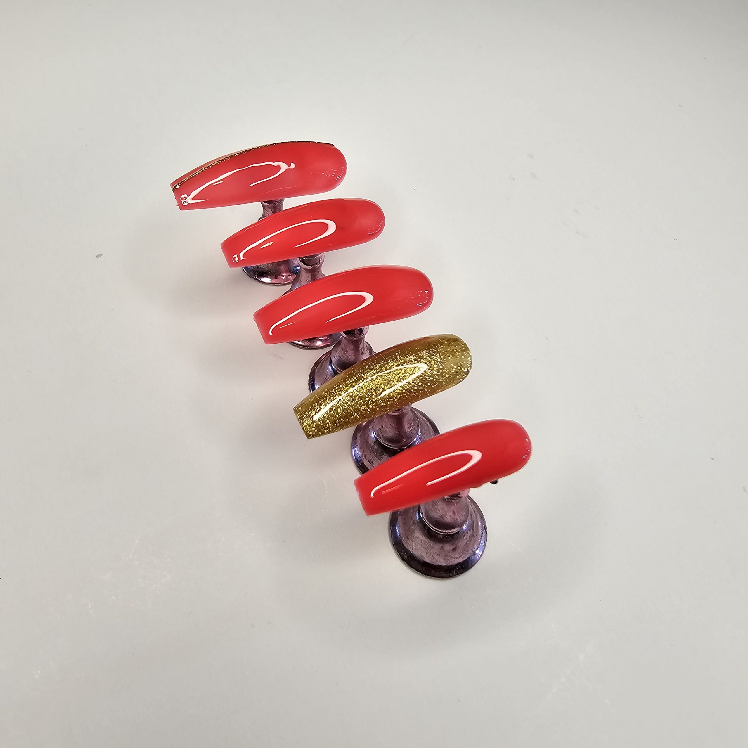 - Color: Red chrome with gold glitter accent