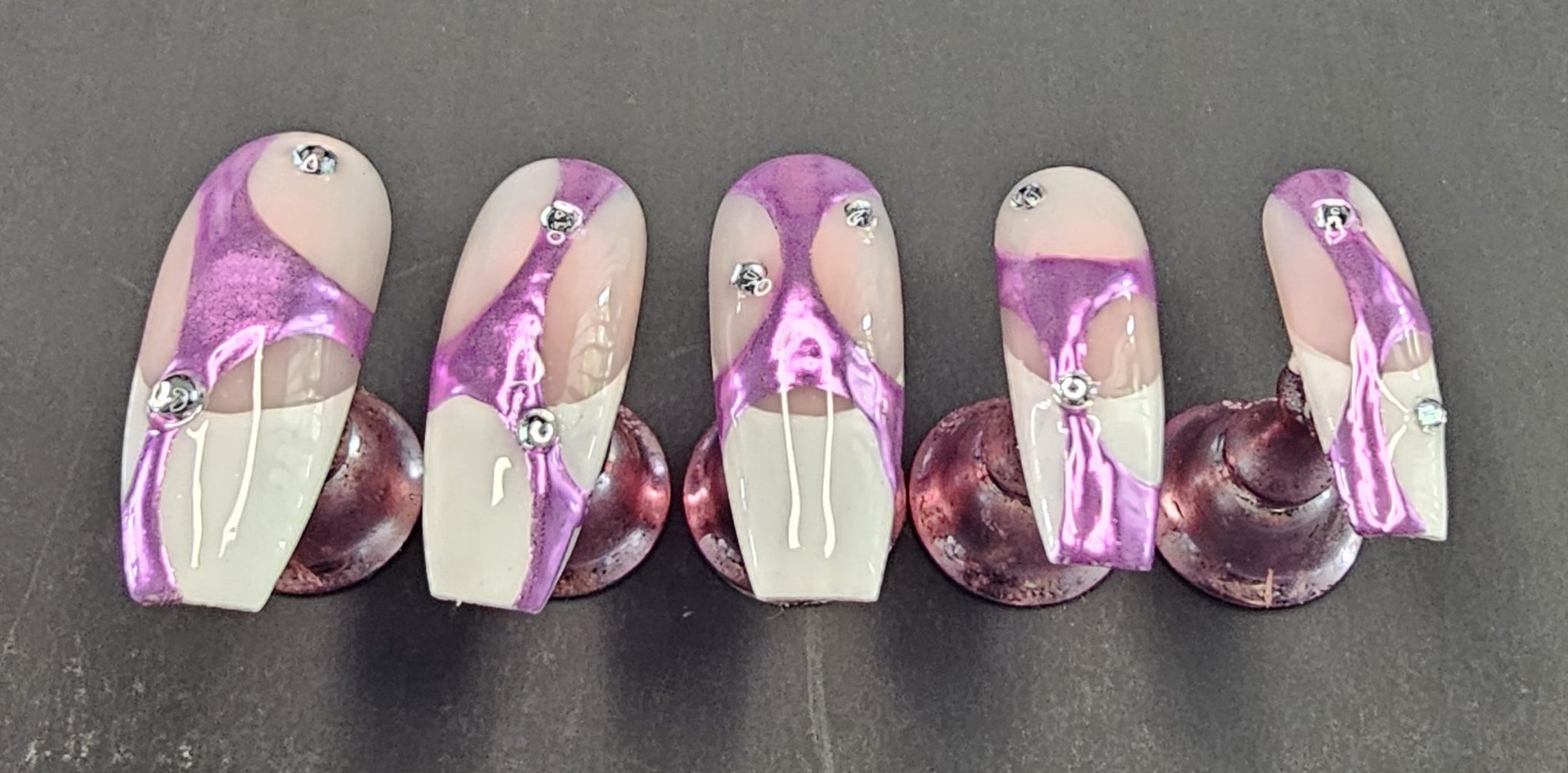 Each nail is carefully crafted to ensure a salon-quality finish with a glossy, long-lasting shine. The metallic chrome detailing catches the light beautifully, while the added gems provide just the right amount of sparkle.